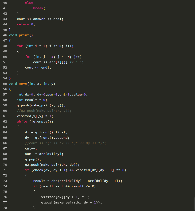 -나는 (1,1)부터 (N,N)까지 한번 쭉 돈 후에 visited배열을 초기화해주는것이 아니고 그때그때 초기화를 해서 매 i,j를 bfs하고 나서 또다른 인구이동이 발생할수도 있다는 생각이 들어서 일일히 bfs(i,j)를 하고나면 memset으로 visited배열을 초기화시켜줬었다. 이건 문제설명이 진짜 잘못됬다고 본다.